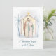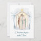 Skicka glädje och frid till dina nära och kära med detta vackra jul nativity design julkort med S:t Josef, Jungfru Maria och Jesusbarnet och "Julen börjar med Kristus" skriven i stilfull stil.