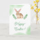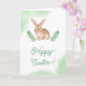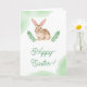 Det här påskkortet har Destei’s brunvita akvarellkanin med extra långa öron, omgiven av gröna blad och akvarellstänk på framsidan. Framsidans textområde lyder för närvarande "Happy Easter!" och är personlig, medan insidan av kortet har ett annat anpassningsbart område för ett längre meddelande och ett namn. Perfekt för vår och påsk, de naturliga nyanserna och skogsinspirerade designen ger en festlig och inbjudande touch till din högtidshälsning.