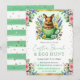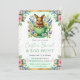 Fira påsk med stil med denna bedårande inbjudan som visar en luddig kanin inklämd i en grön tekopp omgiven av färgglada vårblommor. "Glad påsk"-meddelandet och de mjuka pastellfärgerna skapar en glad och välkomnande atmosfär, perfekt för en påskbrunch och äggsökning. Den lekfulla designen med ömtåliga blommor och gyllene accenter är idealisk för en glad familjesammankomst. Bjud in dina nära och kära att vara med och ha kul med denna vackra och festliga påskinbjudan.