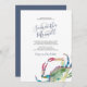 Denna strandbröllopsinbjudan har era namn satta i en stilren handskriven typsnittsstil med evenemangsinformation i ett klassiskt, tecknat grått serif-teckensnitt på en krispig vit bakgrund. Min originella akvarellkrabba i röda, blå och gröna nyanser pryder framsidan. Inbjudningskortet har en komplementerande marinblå färg på baksidan. Ett rustikt, men kustnära elegant val för en avslappnad destination, nautiska eller sommarbröllop. Använd mallfälten för att anpassa din inbjudan och se den innan du köper den. För att se hela brölloppsbrevpapper-temat besök DoTellABelle på Zazzle på https://www.zazzle.com/collections/beach_wedding_watercolor_crab-119096800683513365