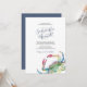Denna strandbröllopsinbjudan har era namn i en snygg handskriven typsnittsstil med evenemangsinformation i ett klassiskt, tecken-serifferat grått teckensnitt på en skarp vit bakgrund. Min originella akvarellkrabba i röda, blå och gröna nyanser pryder framsidan. Baksidan på inbjudningskortet har en komplementerande marinblå färg. Ett rustikt men ändå kust-chict val för avslappnade destination-, nautiska eller sommarbröllop. Använd mallfälten för att anpassa din inbjudan och se den innan du köper den. För att se hela brölloppsbrevpapper-temat besök DoTellABelle på Zazzle på https://www.zazzle.com/collections/beach_wedding_watercolor_crab-119096800683513365