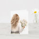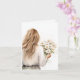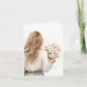 Blond kvinna med en bukett tusenskönor i akvarelleffekt för tom anteckningskorta