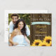 LÄGG TILL DITT FAVORITFOTO FÖR FÖRLOVNINGEN PÅ DESSA CHARMANGA LANDSBYGD- OCH RUSTIKA SOLROS-"SAVE THE DATE"-POSTKORT MED TRÄSTAKET OCH/ELLER TRÄFATTSBAKGRUND MED SPIKTRIM, AKVA LJUS TEAL ÄGGSKAL BLÅ UTRYCKT BANDEROLL OCH EN BUKETT SOLROSOR LÄNGST NER PÅ KORTET. BAKSIDAN AV DETTA POSTKORT KAN SKRÄDDARSYS MED DITT EGET MEDDELANDE. DESSA "SAVE THE DATE" PASSAR PERFEKT TILL EN BRÖLLLOP MED TEMAT GÅRD, GÅRDSHUS, LADUGÅRD ELLER LADUGÅRDSGÅRD. KONTAKTA DESIGNERN, CHRISSYH@CHRISS
