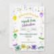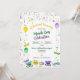 Samlas för en rolig Mardi Gras-firande. Guld-, gröna och lila pärlor, band och fleur-de-lys i vattenfärgseffekt är utspridda runt inbjudan. Mardi Gras-masker, en King Cake och en krona pryder nedre delen av inbjudan. Baksidan upprepar bilden av pärlorna. Perfekt för en Mardi Gras- eller Fettisdag-firande, en Mardi Gras-tematisk bröllops- eller brudshower, en NOLA-möhippa eller en födelsedagsfirande. Tillgänglig med matchande produkter.