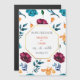 Vi älskar starka färger och djärva mönster, så vi ville ha något som skulle vara roligt och lekfullt men ändå tillräckligt klassiskt för ett bröllop. Denna magnetinbjudan har en mängd färgglada blommor och modern typografi på en vit bakgrund för en sofistikerad blomsterlook - som passar till ett vår/sommar bröllop.