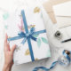 Akvarell Mjuk Blå och Guld Glitter Blommig Presentpapper
