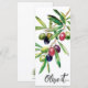 Olivträd, botaniskt namn Olea europaea, som betyder 'Europeisk oliv', är en art av litet träd eller buske i familjen Oleaceae, som traditionellt finns i Medelhavsområdet. Denna vackra personliga akvarell olivgren meny är målad i vackra nyanser med både vått-på-vått och vått-på-torr akvarellteknik.