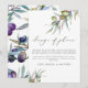 En elegant design för att meddela en ändring av dina bröllopsplaner. Med en vacker grön akvarell oliv- och bladkvistar, med en rubrik "ändring av planer" i mörkgrön modern kalligrafi, ditt meddelande i mörkgrå sans serif-teckensnitt, på en vit bakgrund. Baksidan har ett mönster av svarta och gröna akvarelloliv och blad.