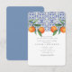 Akvarell Orange Blå kakel Medelhavet Bröllop Inbjudningar