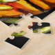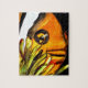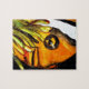 med originalkonst från akvarellmålning av starkt färgad orange randig clownfisk av Sacha Grossel Art. Denna design visar en närbild av den tropiska vattenlevande fisken som simmar genom det gröna korallrevet mot en mörk bakgrund.