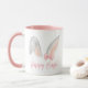 Akvarell påskharens öron med rosa band vår mugg
