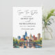 Fira din kärlek med denna Philadelphia Pennsylvania Skyline Watercolor Bröllopsinbjudan, som vackert visar upp charm i Philadelphia. Med en mjuk akvarellillustration av Philadelphias skyline och en romantisk höstkänsla, förenar denna design urban sofistikation med naturlig värme.