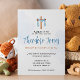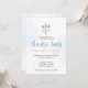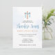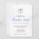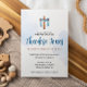 Fira det speciella tillfället med er babypojkes dop med vårt eleganta och anpassningsbara dopkort. Designen har en lugn akvarellblå bakgrund, prydd med ett enkelt men graciöst kors, som förkroppsligar en mild och hjärtlig känsla. Den minimalistiska stilen säkerställer en tidlös charm, perfekt för att fira denna betydelsefulla händelse. Anpassa enkelt detaljerna för att skapa en unik och minnesvärd inbjudan till era kära gäster.