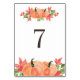 Bord 7. Festlig bordskort med akvarellillustrationer av pumpor och lönnlöv. Denna pumpa bordskort är perfekt för Thanksgiving och höstbröllop, examen, baby shower, brud shower och andra evenemang.