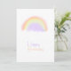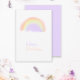 Enkel modern minimalistisk lila, orange och gul akvarell handmålad regnbåge Glad födelsedag kort för henne med lila mauve enfärgad baksida.