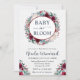 Fira en ny ankomst med denna festliga vinterinbjudan "Baby in Bloom" till baby shower. Med en akvarellkrans av röda och vita blommor med vinterlövverk och bär kombinerar designen säsongens charm med elegant sofistikation. Handmålade blommor ramar in den centrala texten vackert, vilket gör den perfekt för vinter- eller högtidstemanade baby shower-firanden. Denna inbjudan ger en varm och glädjefull touch till din speciella fest.