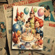 Akvarell Rolig Serieteckning Födelsedagsscen Inbjudningar