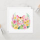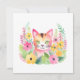 Akvarell Rosa Katt och Sommarblommor Kort