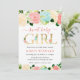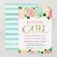 Akvarell Rosa och Mintgröna Blommor Bebisens Först Inbjudningar