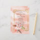 Vackert rosa akvarell Pampasgräs med en fjäder inklämd i en förgylld utsmyckad ram. En bakgrund av gyllene moln fullbordar inbjudan.