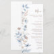 Träd in i en underbar firande av kärlek och natur med vår Watercolor Rustic Boho Bröllopsmeny. Denna fantastiska och unika meny genomsyras av en touch av boho chic med vackert handmålade akvarellvilda blommor i mjuka nyanser av bleka och dammiga blå toner som kompletteras av jordiga tanfärger. Vår lätt-anpassningsbara mall låter dig ge uttryck för din personliga röst och göra den verkligen till din egen. Denna vackra meny är perfekt för romantiska, eleganta bröllop när som helst under året! (Mörk tan text.)
