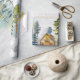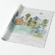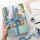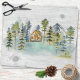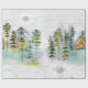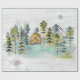 Vi presenterar vårt Akvarell Rustik Dim Skog Stuga Berg Inpackningspapper . med en akvarellstuga inklämd i en dimmig grön tallskog. Perfekt för naturälskare