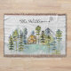 Vi presenterar vår Akvarell Rustik Dim Skog Mountain Stuga Kastfilt. med en akvarellstuga inbäddad i en dimmig grön tallskog. Perfekt för uthyrning av semesterstuga, lodge, sjöhus och stuga.