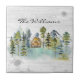 Akvarell Rustik Dim Skog Stuga Mountain Kakelplatta