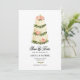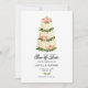 Akvarell Rustik Flerplans Tårta Spara Datum Annonsering. Fira med detta anpassningsbara platta kort med akvarellillustration av en treplans tårta med rosafärgade peonior och bladaccent. Perfekt för vår- och höstbröllop.
