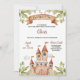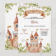 Denna fängslande inbjudan är prydd med ett förtjusande akvarellslott, färgglada flaggor, luddiga moln och livfulla blad med blommande blommor, vilket skapar en magisk atmosfär som kommer att föra ditt barn och deras gäster till en värld av fantasi och kul.
