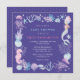 Bedårande akvarell sjövälving under havet lila barnkalas inbjudan. Feminint formspråk med en sjövälving, undervattensdjur, snigelskal och korallrev i akvarell stil.