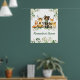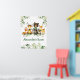 Akvarell Skogs Djur Rum Affisch Tryck. Babydjur inkluderar Björn med Grön Båge, Hjort, Älg, Tvättbjörn, Kanin, Räv och Uggla på eukalyptusblad och skoggrönska. Lägg till Namn.