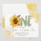 Söt akvarell minimalistisk solros födelsedagsinbjudan för flickors och pojkars första födelsedag. Enkel och söt. Redigerbart namn, adress.