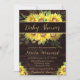 Denna rustika baby shower-inbjudan har livfulla solrosor och frodig grönska mot en varm trästrukturbakgrund, vilket skapar en charmig lantlig-chic-estetik. Elegant skrivstil i kombination med ren serif-typografi ger en polerad och välkomnande känsla, medan de ljusgula blommorna ger glädjerik värme till firandet. Perfekt för lador, utomhussammanhang, sommar shower eller något rustikt-blommigt tema, är denna design helt anpassningsbar med dina evenemangsuppgifter. Den passar också vackert ihop med matchande solros-papper för en sammanhängande, solig baby-shower-serie.