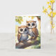 Söta kawaii chibi-ugglor tillsammans på en trädgren dekorerar detta tomma vykort.