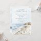 Planera en bröllopsduschfest vid havet med denna redigerbara akvarell strand scen fest inbjudan. Typen är färgen på havet och baksidan av inbjudan visar festdeltagarna som sitter på stranden. En perfekt stil för din havsnära möhippa middag och cocktailfest.