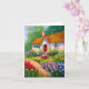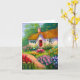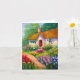 Akvarell stuga och blommor, kan anpassas med din text med hjälp av designverktyg.