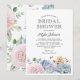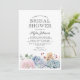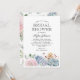 Eleganta bröllopsinbjudningar med klassisk vit bakgrund, en akvarellskärmning av pastellfärgade blommor och suckulenter, och en stilren brudpartsmall som är enkel att anpassa.