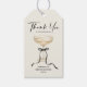 Färdigställ detaljerna kring din bröllopsfest med denna eleganta champagne-tema tack-gåva-etikett. Med en delikat champagne-coupe-illustration bunden med ett svart band och modern typsnitts typografi, ger denna design en förfinad och sammanhängande touch till dina bröllopspresenter.
