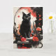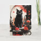 Akvarell svart katt porträtt stänk konst med röda blommor på en röd och svart bakgrund. Tom välkomstkort för födelsedag, årsdag, ny bebis, tack, sympati, etc.