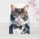 Akvarell Tabby Katt i Smoking och Svart Fläs Kort