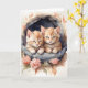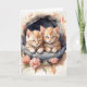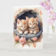 Bedårande orange tabby kattungar som kramas tillsammans omgivna av vackra blommor. Tom julkort för födelsedag, årsdag, ny bebis, tack, kondoleans, etc.