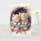 Akvarell Tabby Kattungar Bröder Blommor Blank Kort