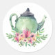 Akvarell Tekanna med blomsterbukett Runt Klistermärke