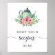 Denna vackra bröllopsfest-recepts-skylt har en akvarell-tekanna och en rosa blomsterbukett. Det är den perfekta dekorationen för att samordna med ditt teparty-tema!