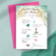 Denna akvarell tropiska inbjudningsmall har en akvarell strandlinje med charmiga ikoner i form av ett paljeträd, havssköldpadda, tropisk fisk, cocktail, fyr och rosa flamingo. Använd mallfälten för att anpassa för en möhippa, födelsedagsinbjudan eller bröllopshelg-itinerar. Perfekt för Luau och tropiskt tematsevenemang. För att se fler illustrerade inbjudningar som denna besök Do Tell A Belle på Zazzle på www.zazzle.com/dotellabelle