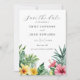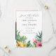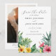 Detta moderna, eleganta akvarell tropiska blommor och grönska foto bröllop spara-datum kort kan anpassas med din information i modern typografi och ett speciellt foto på baksidan. Designad av Thisisnotme©