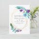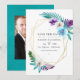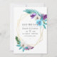 Färgglada akvarell tropiska blad och orkidéer bröllop bespara datumet med guld geometrisk ram och turkos blå akvarell tvätt baksida.