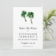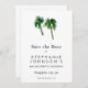 Sätt tonen för en tropisk fest med denna Watercolor Tropical Palm Trees Bachelorette Save the Date. Med två enkla palmträd i akvarellstil är designen chic och minimalistisk, perfekt för en kust- eller resmålutflykt.