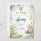 Denna förtrollande design har drömlika akvarellillustrationer av en undervattensscen, prydd med skimrande guldfärgade accenter. Perfekt för en magisk fest, denna inbjudan fångar havets skönhet med känsliga vattenelement och skapar en fantastisk och elegant stämning. Idealiskt för dem som söker en unik och charmerande inbjudan som kommer att skapa vågor på alla födelsedagsfester.
